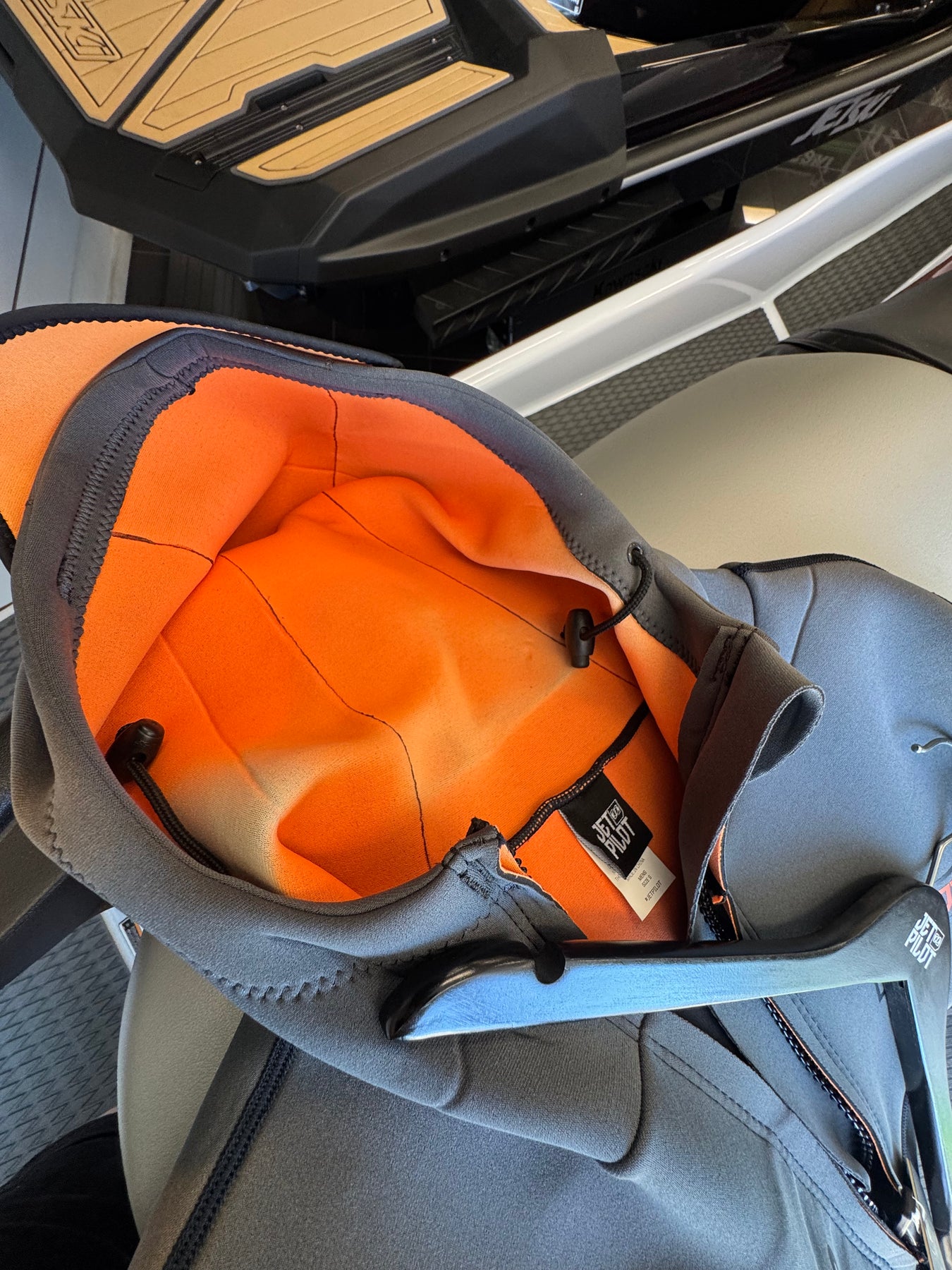 - Hood with drawstring